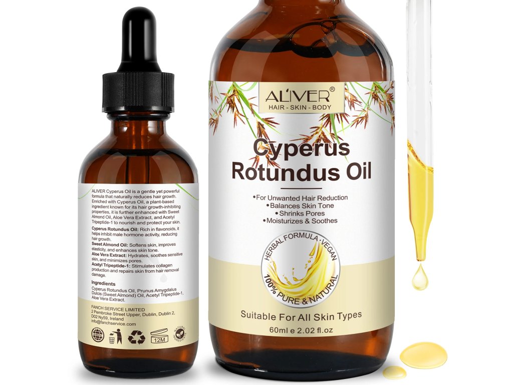 Olej Cyperus Rotundus je oblíbený zejména v kosmetické péči zaměřené na redukci nežádoucího ochlupení. Díky přirozenému obsahu flavonoidů může postupně oslabovat vlasové folikuly, což vede k pomalejšímu růstu a postupnému vypadávání chloupků při pravidelném používání. Zároveň pokožku vyživuje, zklidňuje po depilaci a podporuje sjednocený tón pleti.