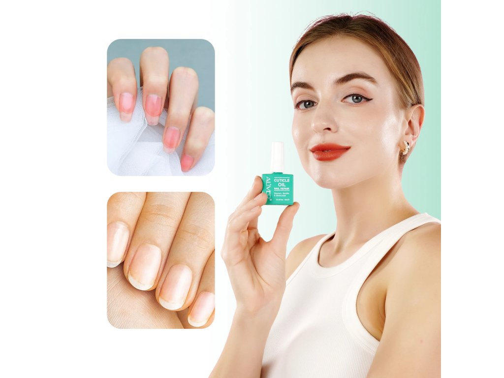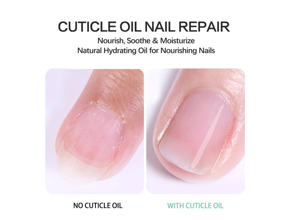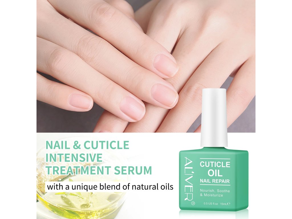 - Apply a small amount of oil to the cuticles and the skin around the nail bed.