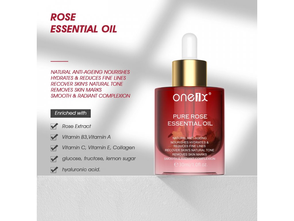 To serum przeciwstarzeniowe jest bogate w witaminy A, B3, C, E, kolagen i kwas hialuronowy, które pomagają utrzymać skórę i ciało nawilżone oraz przywracają naturalny koloryt cery. Skutecznie zwalcza zmarszczki, blizny i przebarwienia, głęboko przenikając w skórę i łatwo się wchłaniając. Wykonane z najwyższej jakości róż, serum można rozcieńczyć w dowolnym produkcie do pielęgnacji skóry, aby zapewnić dodatkowe nawilżenie i ochronę.
