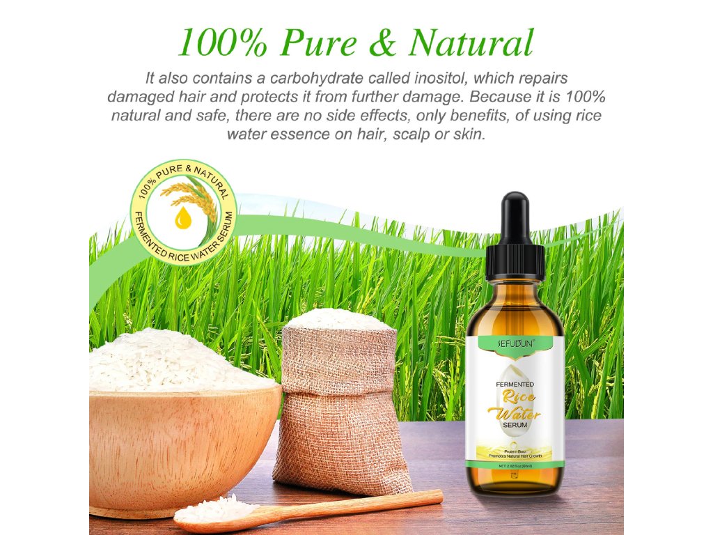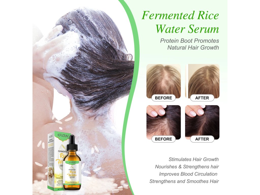 - Stimuluje rast vlasov – Fermentovaná ryžová voda prirodzene podporuje aktivitu vlasových folikulov a zlepšuje prekrvenie pokožky hlavy, čím urýchľuje rast nových vlasov.