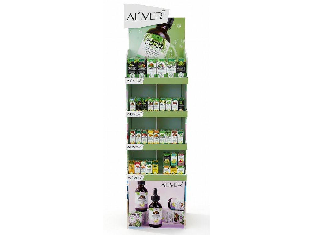 High-quality printing and a design featuring a mosaic of various Aliver products on the sides create a modern and professional look that immediately attracts customers.